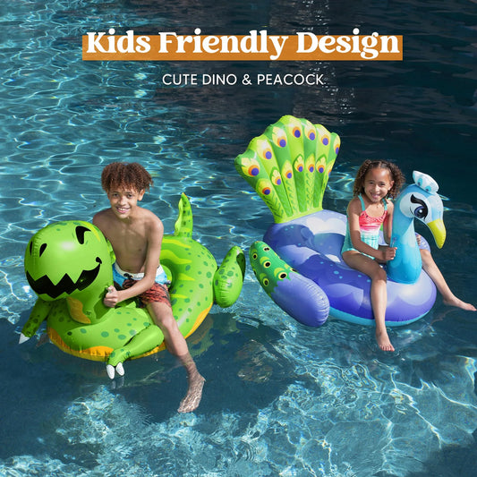 Syncfun 2 Packs Inflatable Dinosaur & Peacock Pool Floats Set, Fun Beach Floaties for Swim Party Toys, Inflatable Island, Summer Pool Raft Lounge Ride On for Adults Kids