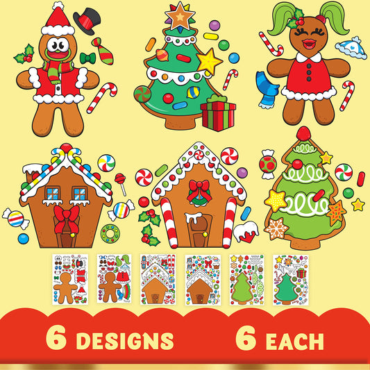 SYNCFUN 36 Pcs Christmas Make-a-face Sticker Sheets for Kids, Make Your Own Christmas Gingerbread Sticker Series and Trees Sticker Sheets for Kids Party Favors Christmas Craft