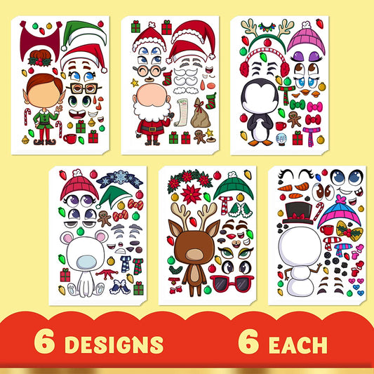 Joyfy 36 Pcs Christmas Make-a-face Sticker Sheets for Kids, Make Your Own Christmas Characters Mix and Match Sticker Sheets for Kids Party Favors Craft Kits