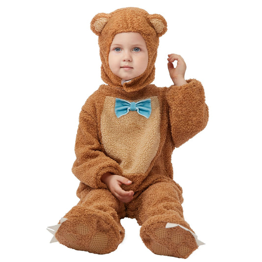 Syncfun Bear Halloween Costume for Baby and Toddler, Bear Jumpsuit Costume with Bear Hood and Booties for Halloween Costume Party Dress Up (0-4 Year)