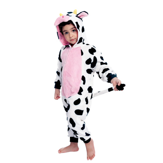 Syncfun Baby Animal Costume Cow Pajama jumpsuit Plush Hooded Romper Toddler Animal pajamas for Halloween Party Dress Up Role Play 1-4 Years