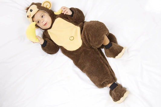 Syncfun Baby Monkey Costume for kids, with Toy Banana for Infant, Monkey Onesie, Kids Halloween Dress UP