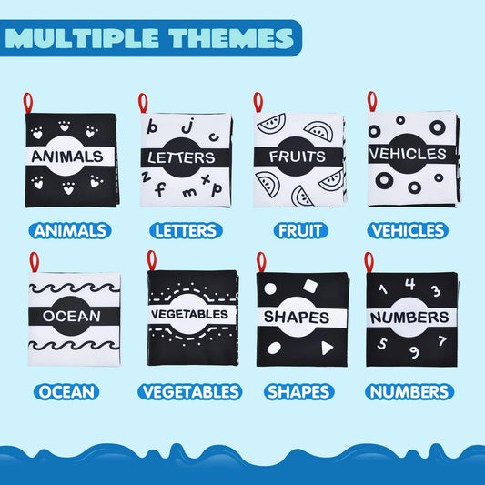 Syncfun 8 Pcs Baby Bath Toys, Nontoxic Fabric Waterproof Newborn Toys, Infant Early Education First Toys for Toddlers Kids Birthday Gifts