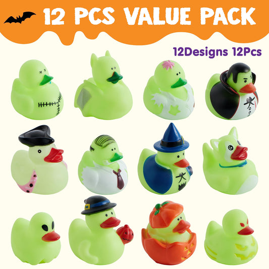 Joyfy 12 Pcs Halloween Rubber Ducks,Halloween Toys Glow-in-The-Dark Rubber Ducks in Bulk for Baby Toddlers Kids,Halloween Bath Toy Basket Prizes,Halloween Toys for Trick or Treaters
