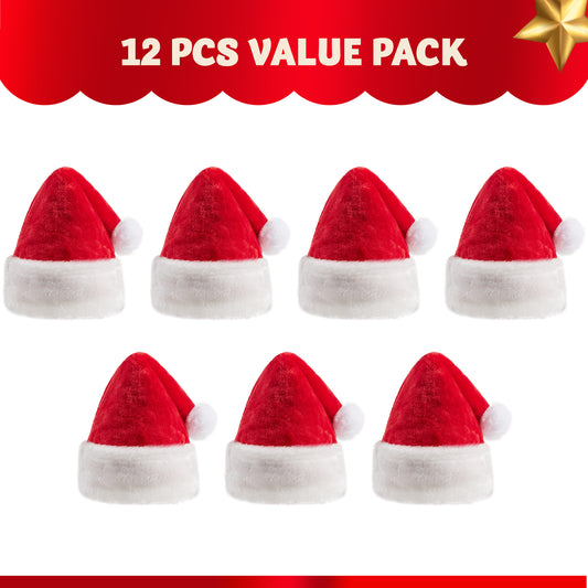 Joyfy 12 Pack Santa Hat,12.5 x 20 Inch Santa Hats for Adults Christmas Hats Plush Red Velvet Santa Hats Bulk for Adults Men Women Kids Christmas Party Favors Holiday Props