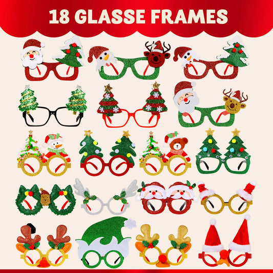 Joyfy 12 Pcs Christmas Eyeglasses Frames Glitter Photo Props for Kids Adult Party Favors Holiday Supplies (One Size Fits All)