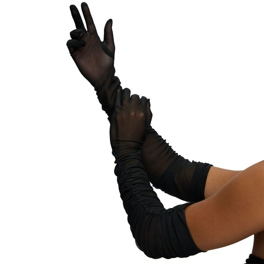 Syncfun Halloween Black Mesh Long Gloves for Adult Women, Black Sheer Long Opera Gloves for Women Halloween Costume Dance Party Dress Up,One Size Fits All