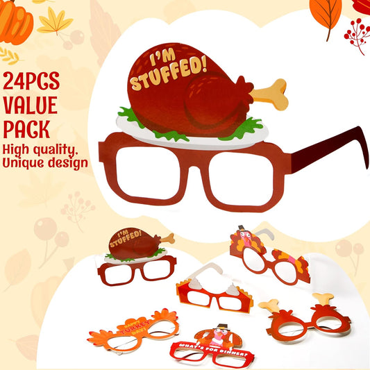 JOYIN 24 Pcs Thanksgiving Turkey Eyeglasses, Turkey Eyewear Frame Pumpkin Maple Leaves Photo Props for Kids Thanksgiving Harvest Party Decoration and Thanksgiving Day Accessories (One Size Fits All)