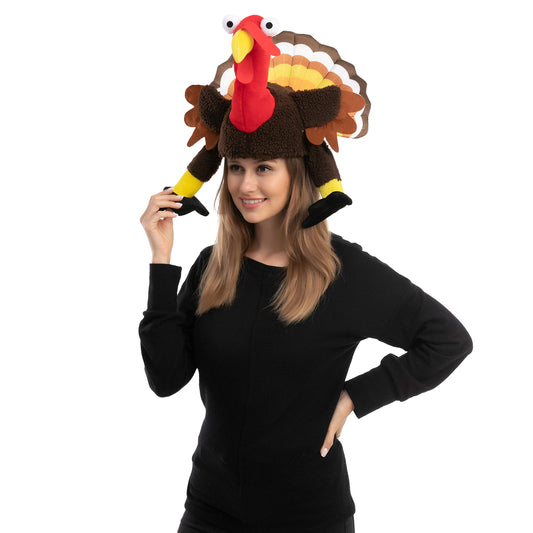 Spooktacular Plush Turkey Gobbler Hat with Long Neck for Happy Thanksgiving Party Costume, Outfit and Dress