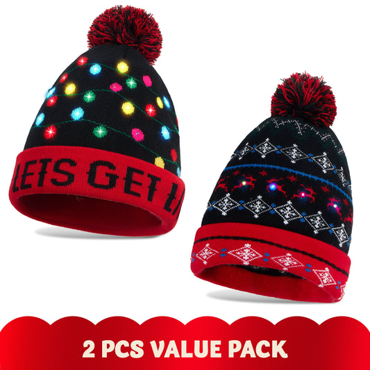 Joyfy 2 Pack LED Christmas Hat,Light Up Ugly Christmas Beanies for Adults,Mens Gifts for Christmas,Funny Hats Christmas Party Favors (Battery Included with 3 Flashing Modes)