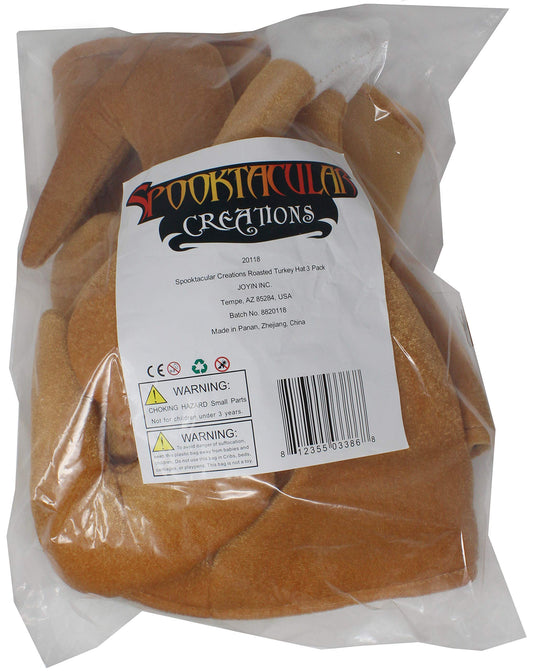 Spooktacular Creations 3 Pack Plush Roasted Turkey Hats for Thanksgiving and Halloween Costume Dress Up Party