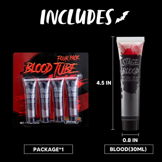 SYNCFUN 4 Pcs Halloween Fake Blood,1oz Vampire Blood Makeup Tube,Halloween Blood Zombie Makeup,Vampire Makeup Kit for Adults,Halloween Costume Vampire Accessories