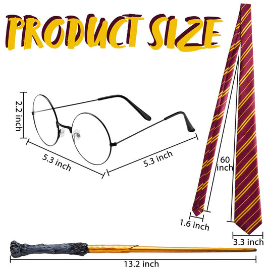 SYNCFUN 4 Pcs Halloween Wizard Costume Accessories Set with Glasses Tie Wand and Scarf,Cosplay Accessories for Kids and Adults Dress Up