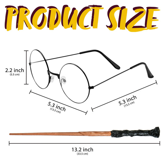 SYNCFUN 2 Pcs Halloween Wizard Costume Accessories Set with Black Nerd Circle Glasses and Novelty Witch Magic Wands,Cosplay Accessories for Kids and Adults Dress Up