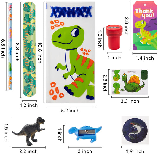 SYNCFUN 112 Pcs Dinosaur Party Favors Set for 12 Kids, Goody Bags with Dinosaur Gift Tags for Kids Party Game Prizes