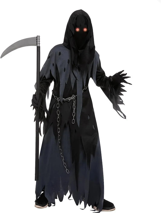 Syncfun Child Glowing Eyes Grim Reaper Costume, Phantom Costume for Kids Halloween Fancy Dress Up 5-12 Years