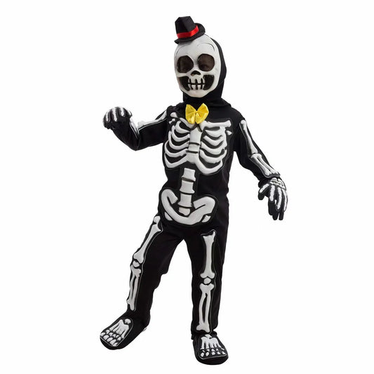 Syncfun Glows in the Dark Skeleton Costume for Kids, Black Skelebones Jumpsuit, Bone Halloween Costume Dress up