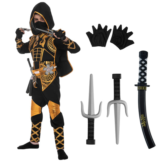 Syncfun Golden Ninja Costume for Kids Boys Halloween Dress Up Age Up to 12 Years