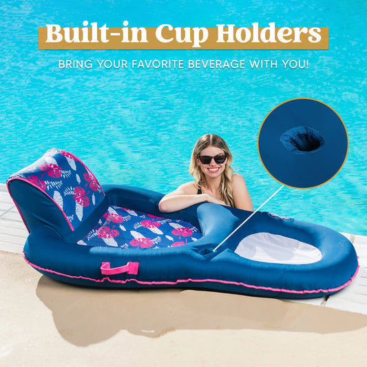 Syncfun Inflatable Pool Float Lounger with Backrest, Air Sofa Floating Chair with Handle and Cup Holder, Summer Pool Floaties Rafts Lounger for Adult & Kids