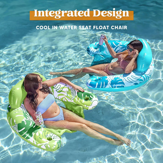 Syncfun 2 Packs Inflatable Pool Chair Float for Kids & Adults, Pool Floaties with 2 Cup Holder, Pool Loungers for Pool Lake Travel Beach
