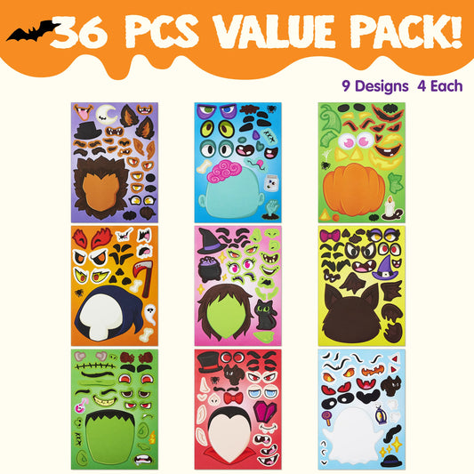 JOYIN 36 PCS Make-a-face Sticker Sheets Make Your Own Halloween Characters Mix and Match Sticker Sheets with Vampire,Witch,Frankenstein,Ghost and More Halloween Kids Party Favor Supplies Craft