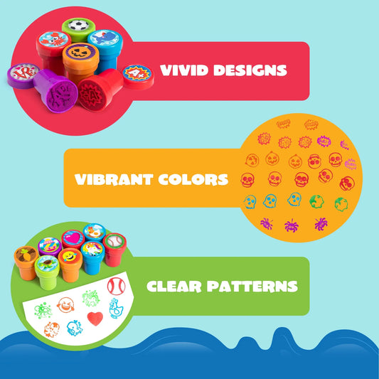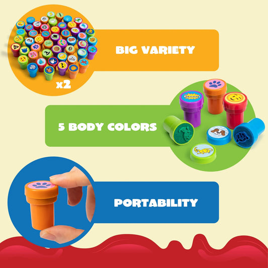 Syncfun 100 Pcs Assorted Stamps for Kids, Self Ink Stamps Sets, for Party Favor, Teacher Stamps, Prize for Classroom, Easter Egg Stuffers