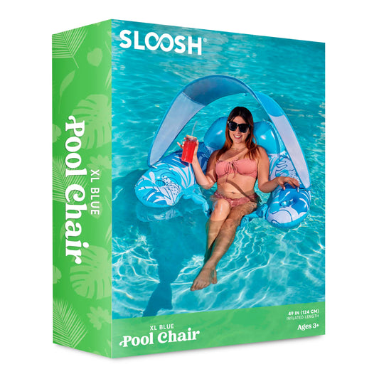 SYNCFUN Pool Float with Canopy, XL Pool Lounge Chairs with Cup Holders, Floating Pool Chair for Adults, Inflatable Pool Floatie with Headrest for Summer Pool Party