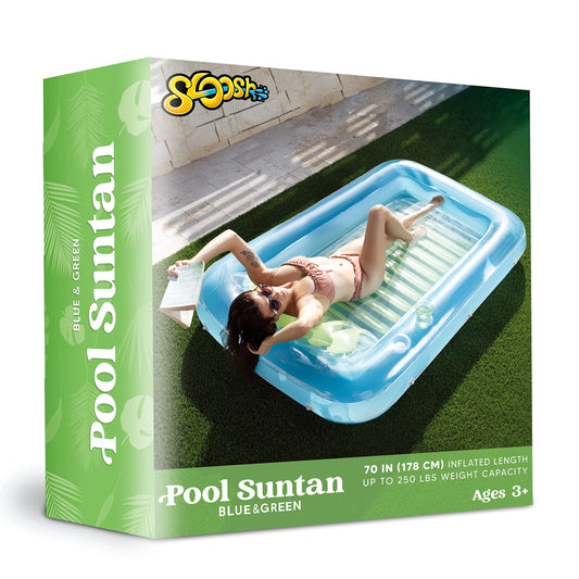 SLOOSH Inflatable Tanning Pool Lounger Float, 70" x 46" Large Suntan Tub with Pillow, Water Raft Float For Kids & Adults, L-Blue
