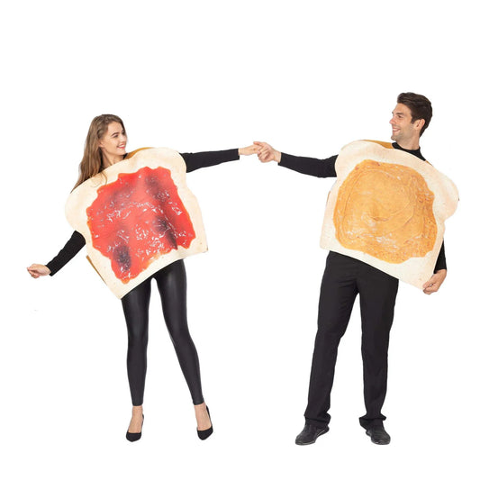 Adult Couple Costume Set w/one Peanut Butter and One Jelly Plush for Halloween Dress Up Party