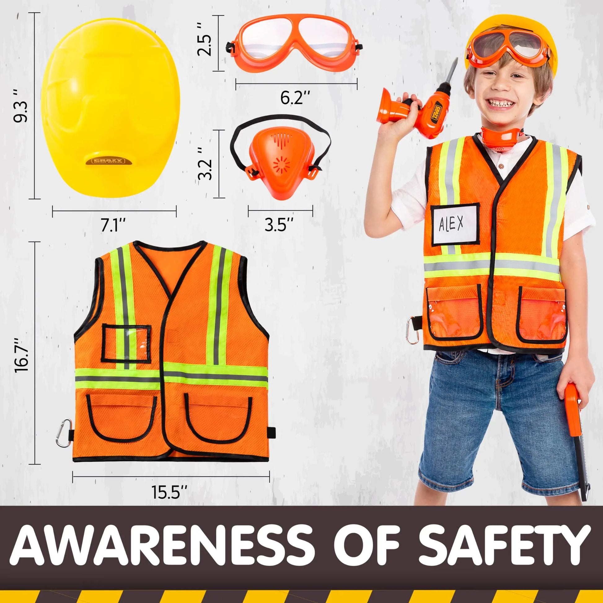 Construction Worker Costume Role Play Dress up Set for 4-7 Years Old Toddlers Kids Unisex