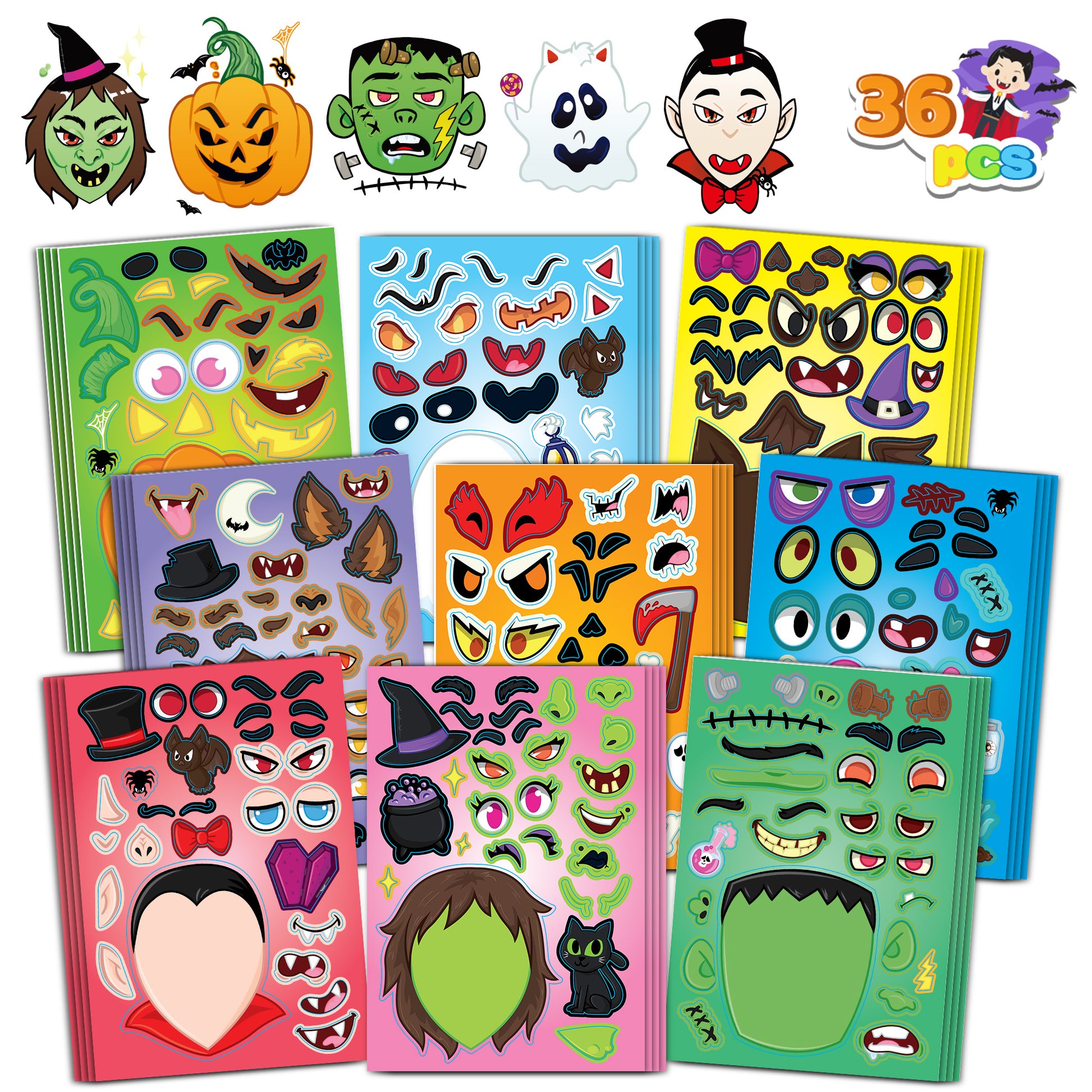 Joyfy 36 Pcs Halloween Stickers Make a Face Halloween Characters Stickers for Kids,Witch Vampire Self Adhesive DIY Decorations Stickers Fall Stickers Party Favors for Kids,Halloween Craft