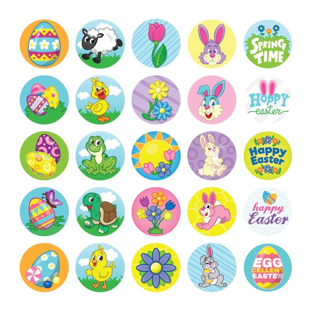 - Easter Crafts Assortment Kit includes 500 Easter Theme Stickers, 5 Rolls of 100, 30 Designs. Approx. Size: 1.5"