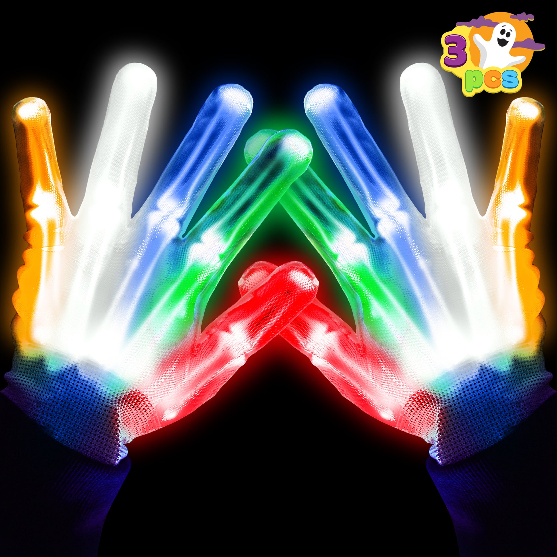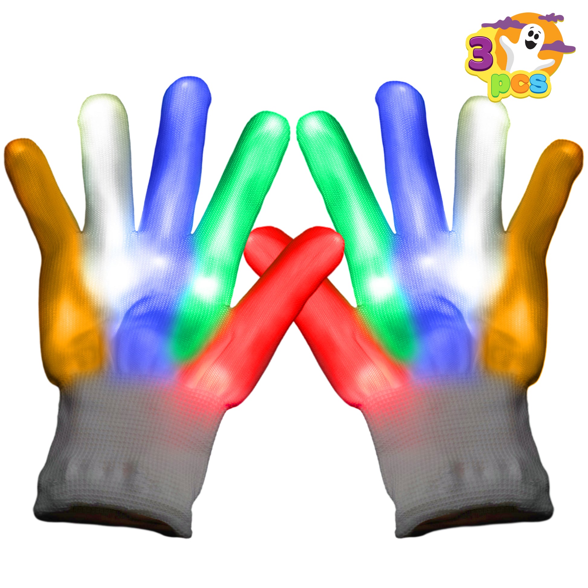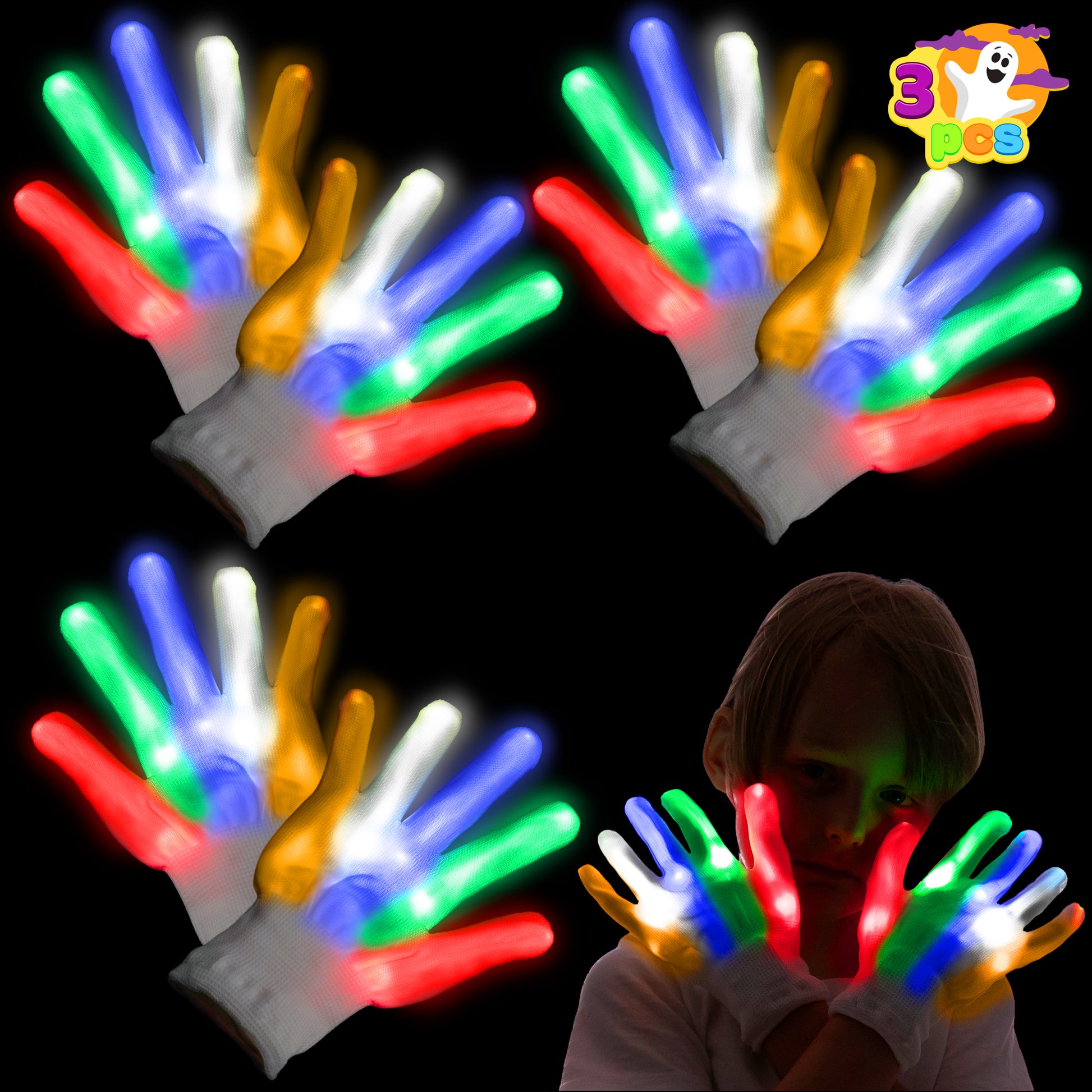 JOYIN 3 Pack LED Gloves for Kids,Flashing Finger Light Up Gloves Cool Glow Gloves with 3 Lighting Modes,Glow in the Dark Gloves for Kids Halloween Party Favors,Halloween Costume Accessories