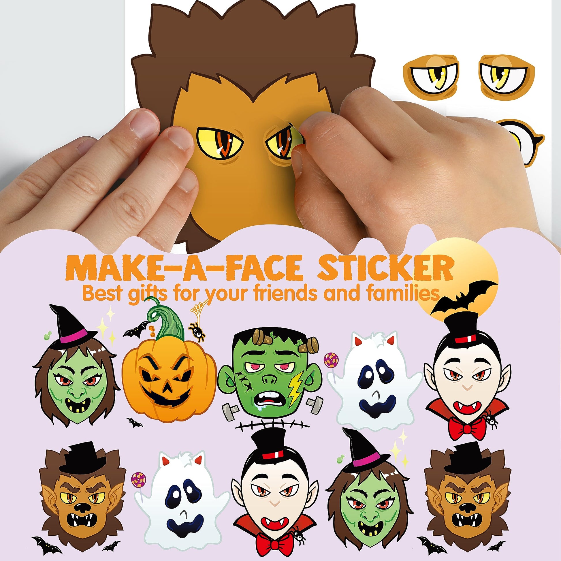JOYIN 36 PCS Make-a-face Sticker Sheets Make Your Own Halloween Characters Mix and Match Sticker Sheets with Vampire,Witch,Frankenstein,Ghost and More Halloween Kids Party Favor Supplies Craft