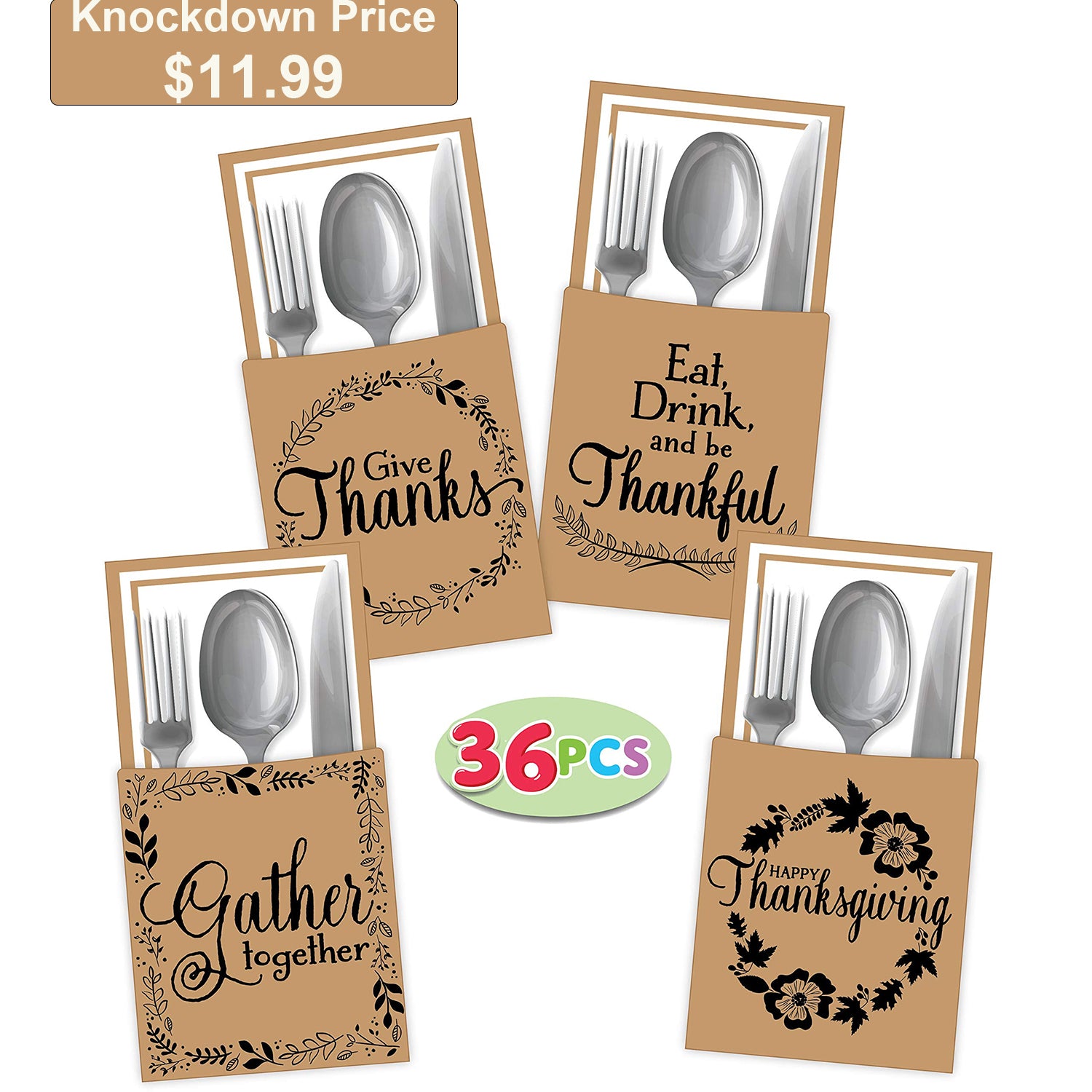 JOYIN 36 Pcs Thanksgiving Table Decoration Turkey Utensil Holder for Xmas Table Decor Harvest Party Supply