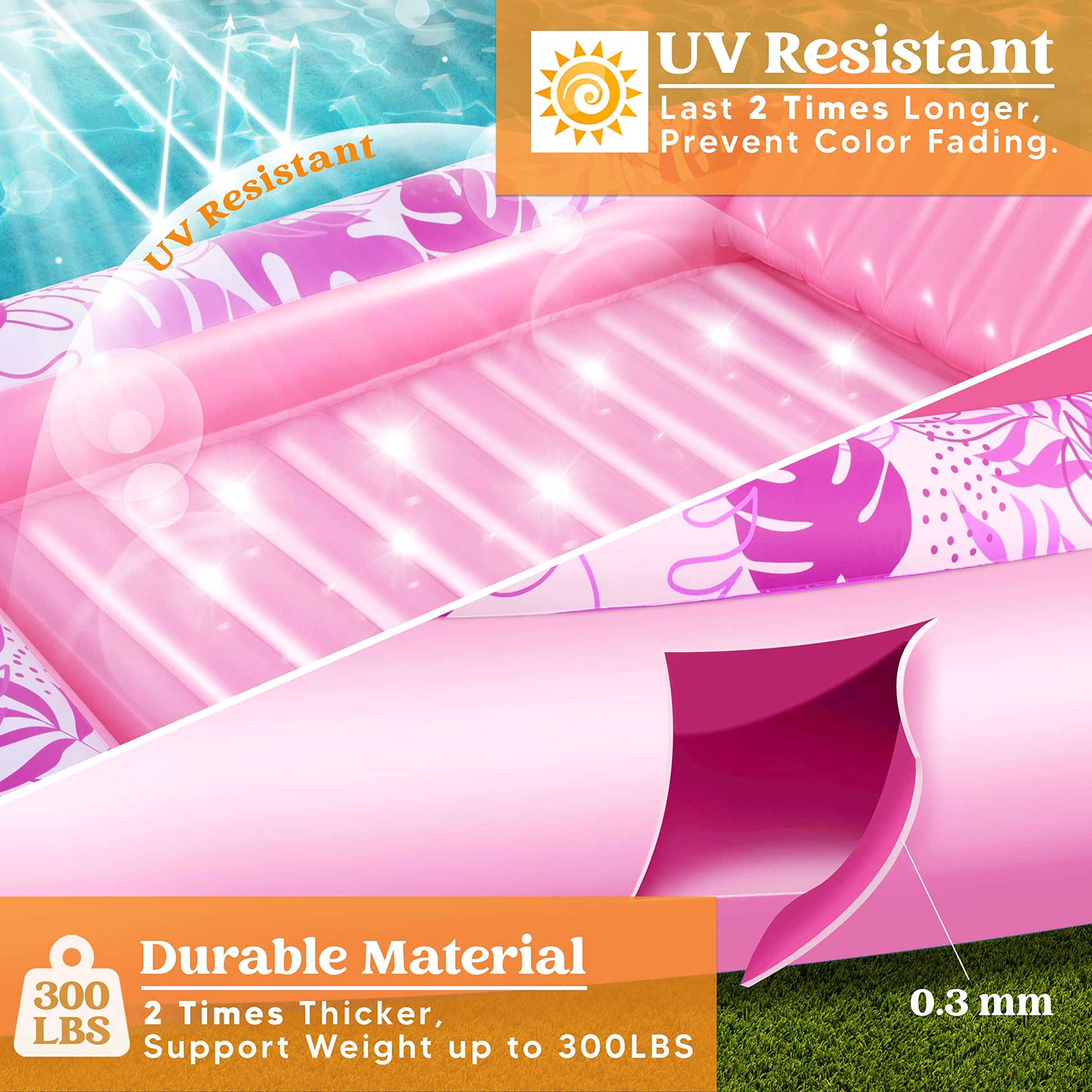 Sloosh Inflatable Tanning Pool Lounger Float, 85" x 57" Extra Large Suntan Sun Tan tub for Adults & Kids, Tanning chair, Bed Blow up, Raft Lounge Floatie,XL-Pink