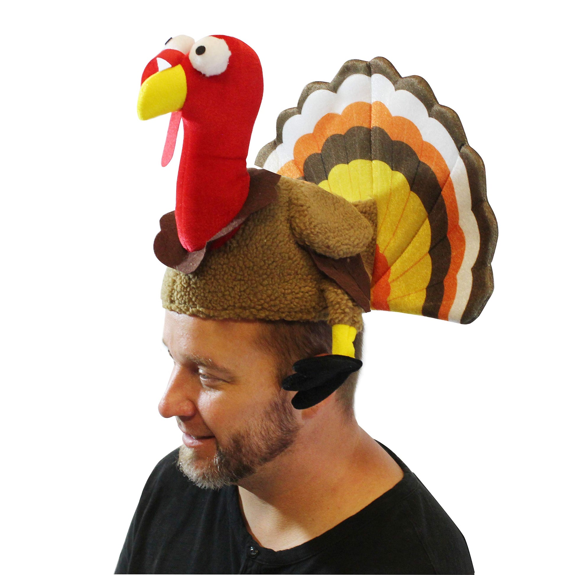 - One Size 2 Pack Funny Thanksgiving Turkey / Gobbler Hats features 2 Colorful Full-Bodied Turkeys with Adjustable Embellished Turkey Tail.