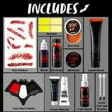 - Value Family Pack: 1 liquid fake blood, 1 fake blood gel, 1 fake blood spray, 2 makeup cream black & white, 1 scar wax, 2 stipple sponge, 2 applicators, 2 sponges, 1 scar tattoo, 2 makeup sticks.A complete costume kit for the whole family, adults, men, women, and kids.
