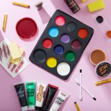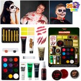 - Value Family Pack:12 assorted color makeup face paint palette, 6 colored makeup crayons,1 tooth wax, 1 makeup sticks, 1 glitter gel, 1 scar wax, 1 latex, 1 fake blood gel, 1 liquid fake blood, 1 fake blood spray, 3 makeup creams black, white & green, 1 scar tattoo, 2 stipple sponge, 2 applicators and 2 sponges.SFX makeup and scars, scratches, bruise, burns, gashes, bites,cuts or wounds and more!