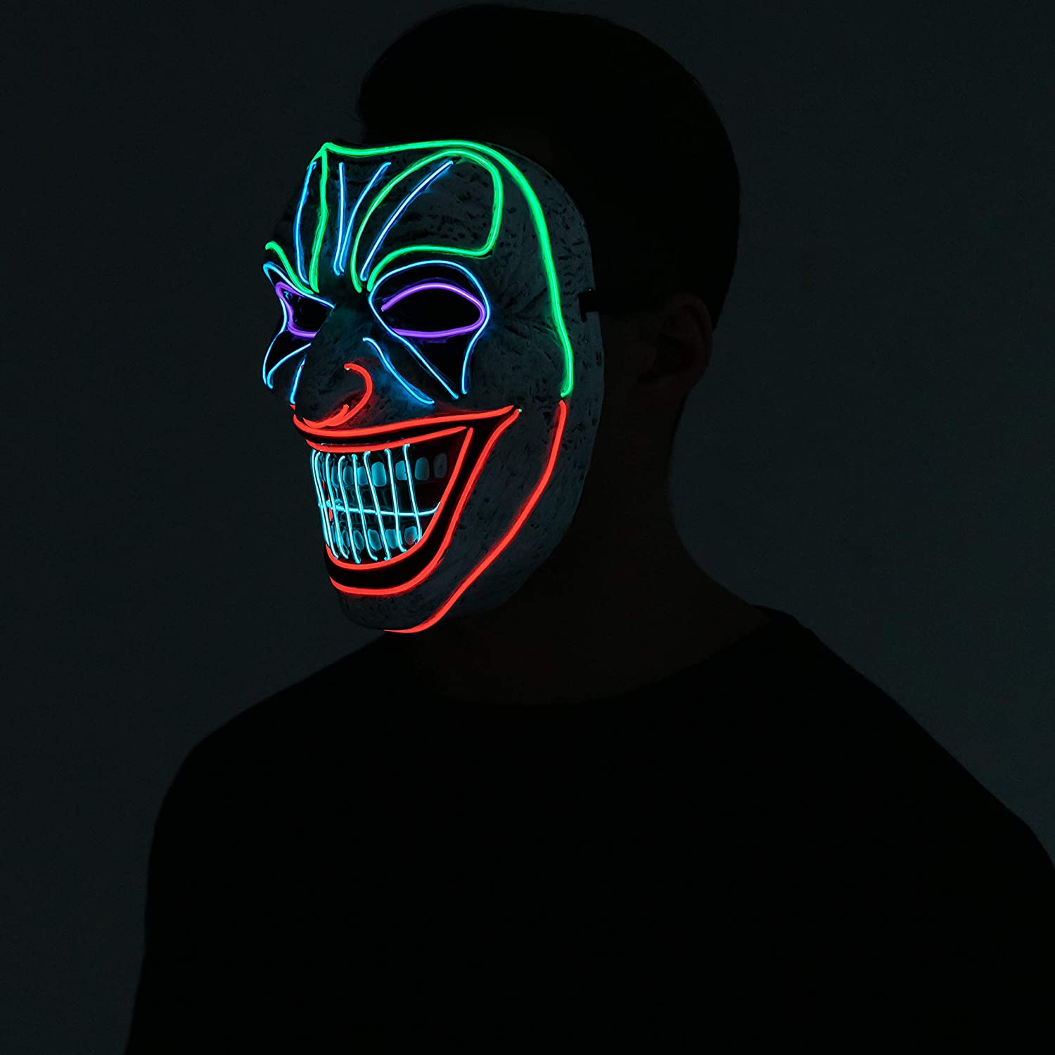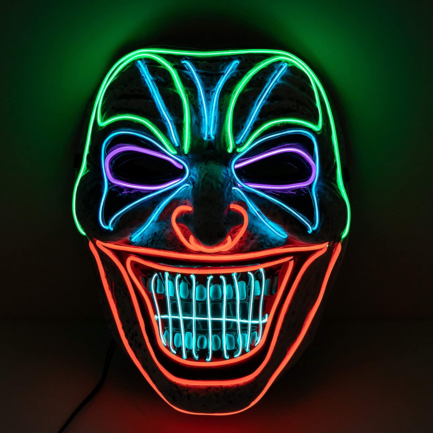 - Super Value. The Halloween themed LED face Mask is in multicolors, making your Halloween party glow in the dark.
