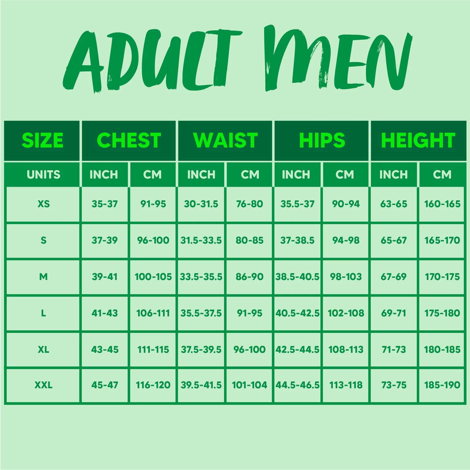 - Sizes: Small, Medium, Large, X-Large and Extra Large.
