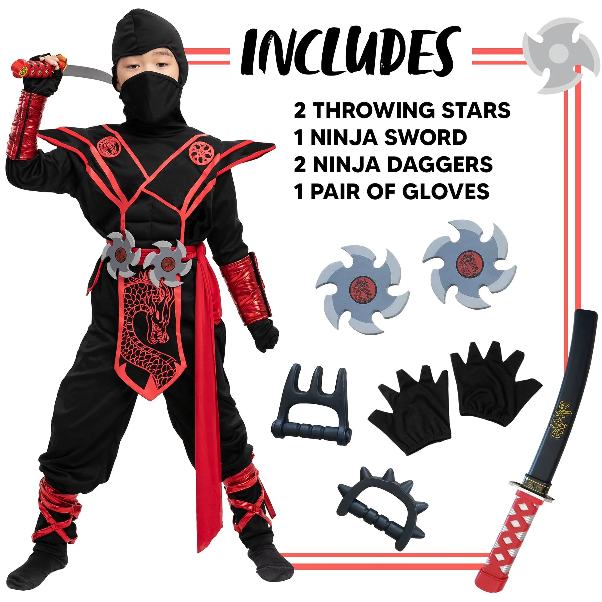 Spooktacular Creations Red Ninja Costume for Kids Halloween Dress Up Party Outfit Set, L