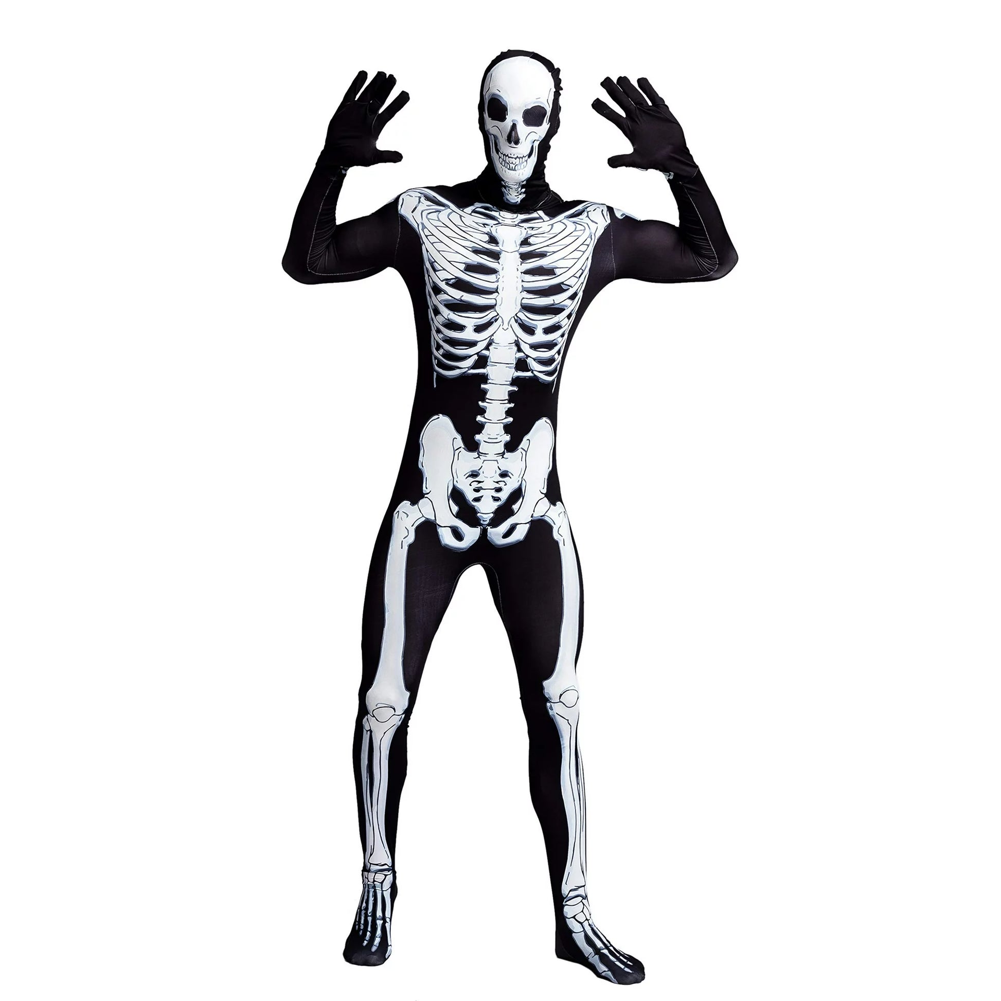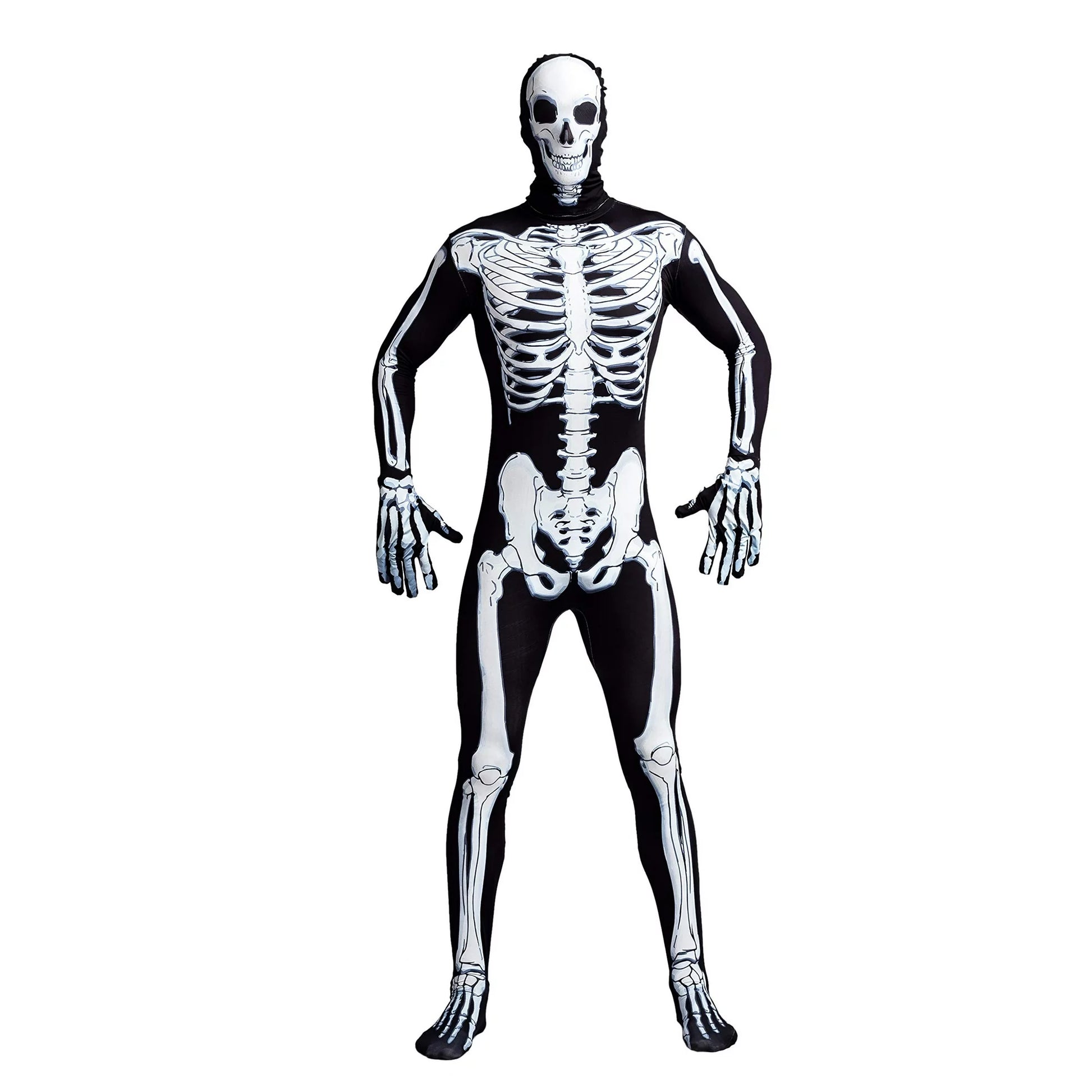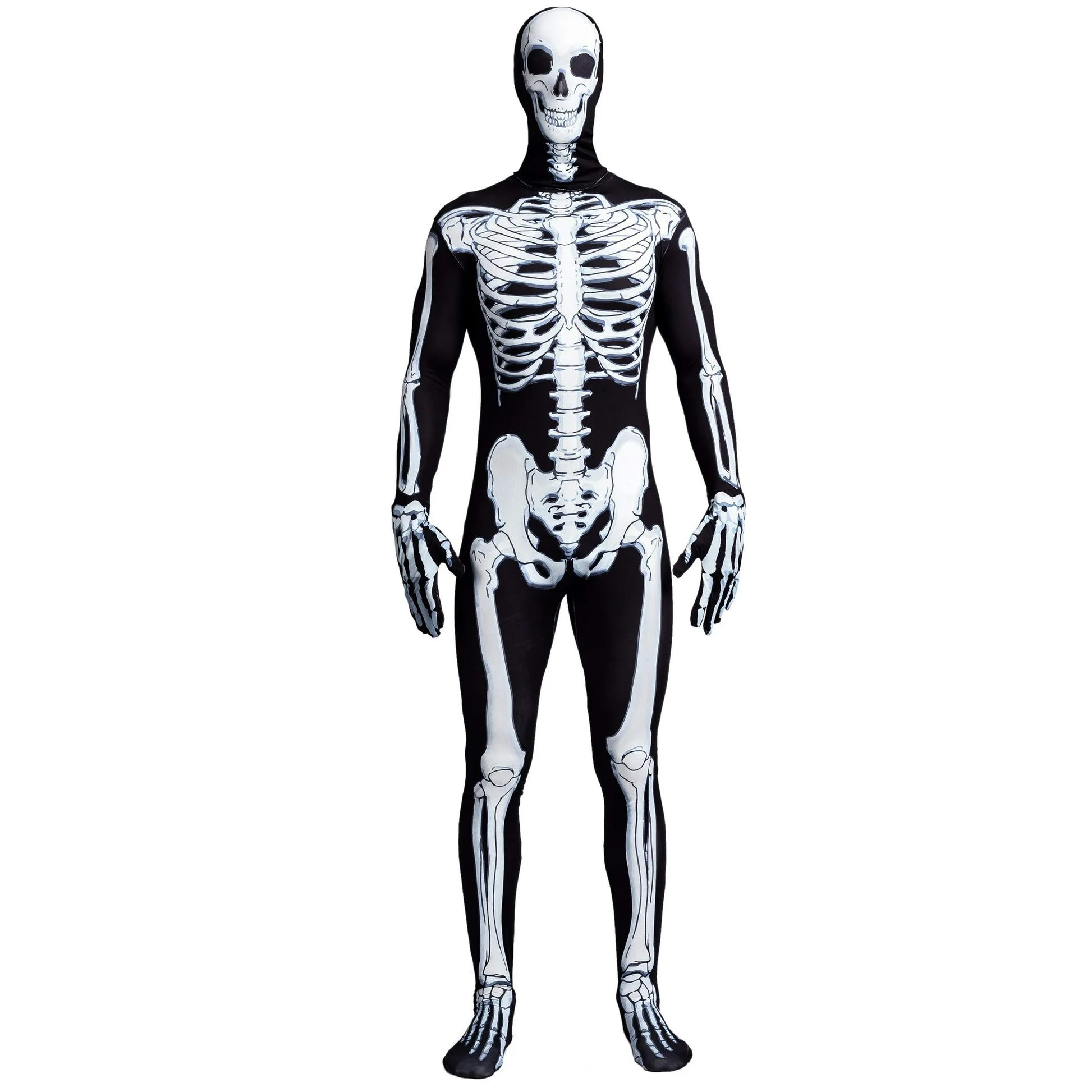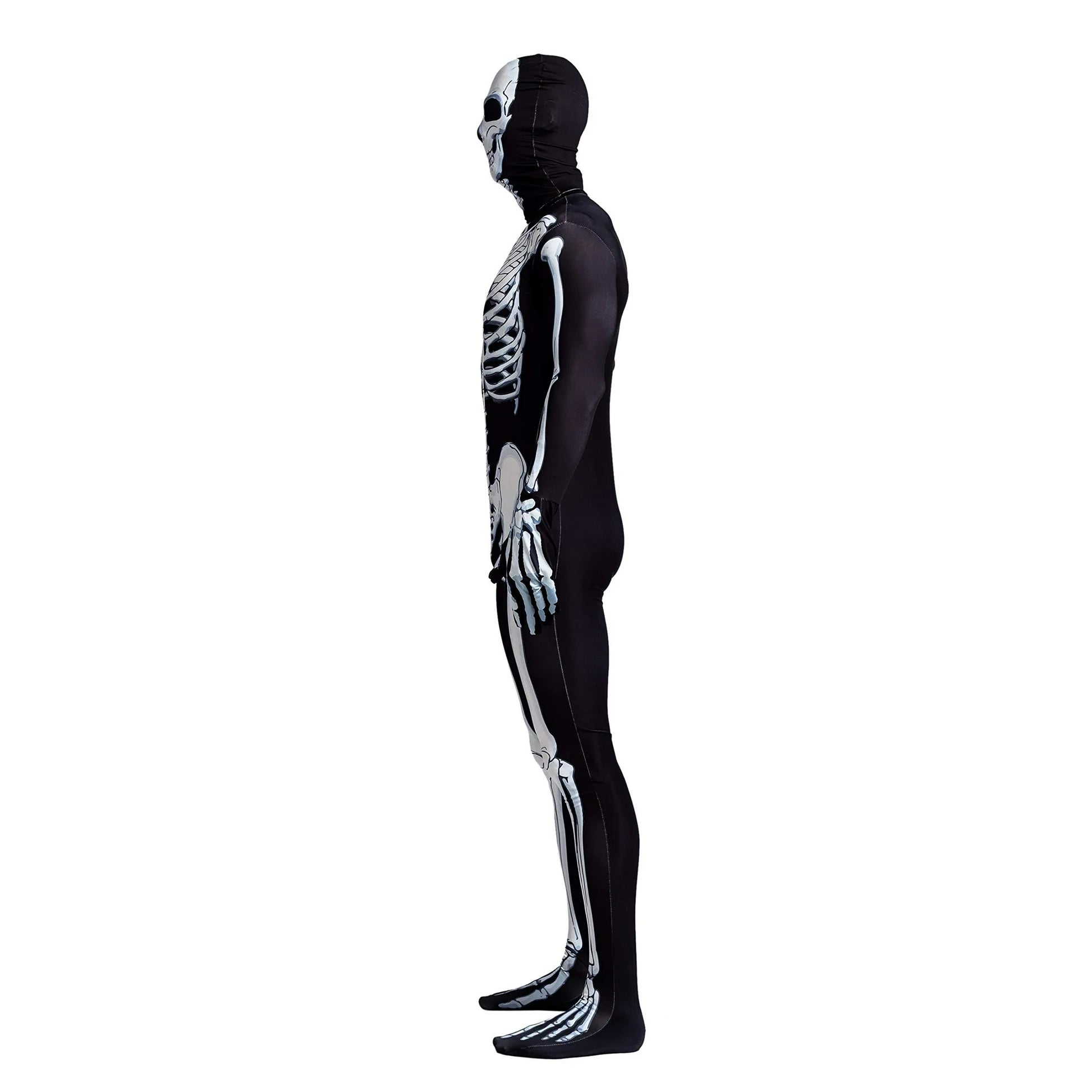 Human Skeleton Roleplay Costumes for Men Includes Skeleton Jumpsuit with Skull Hood.