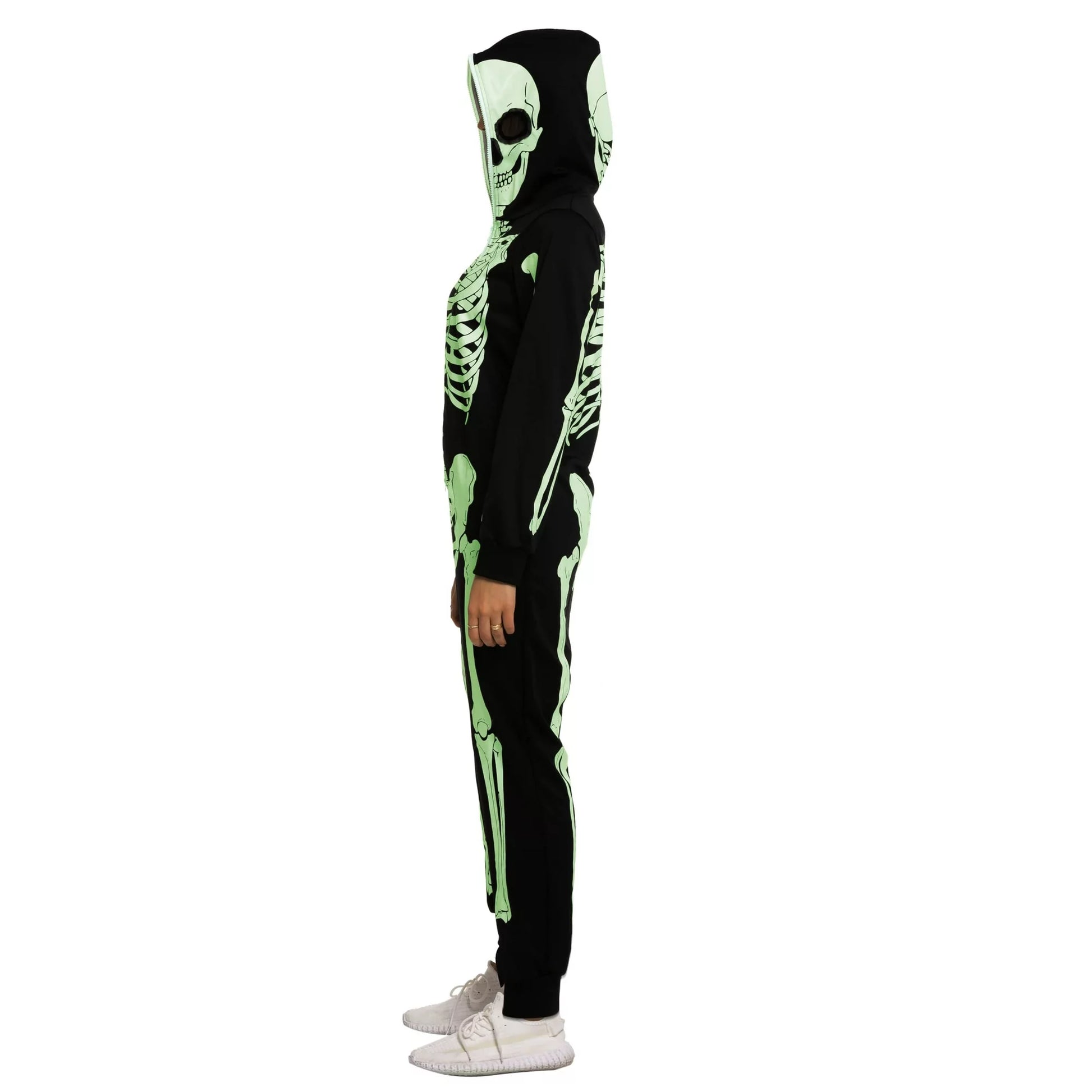 Spooktacular Creations Skeleton Glow Hoodie for Adult, Jumpsuit Pajama Jumpsuit for Halloween Costume for Women, Themed Party Dress UP, L