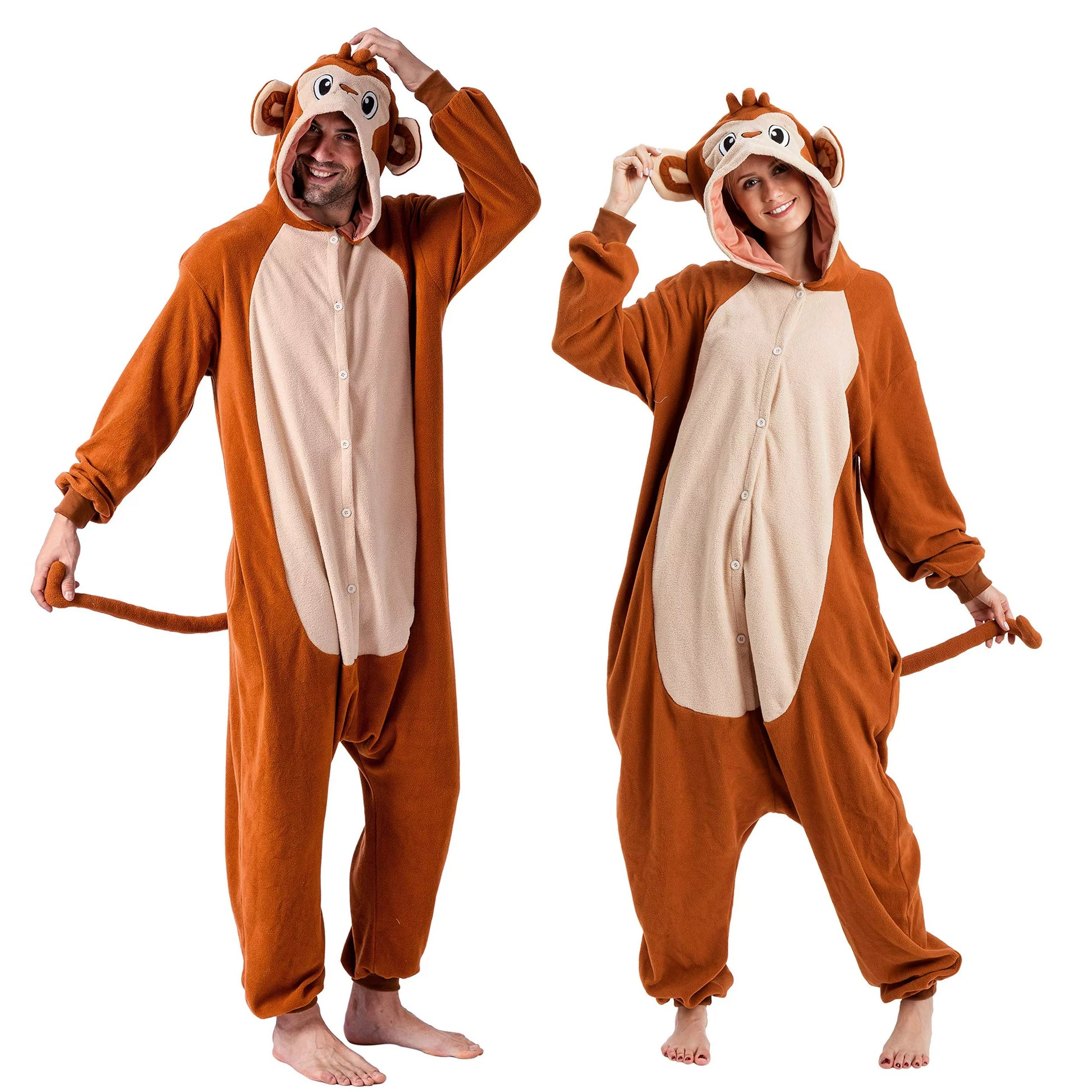 - Value Package: Deluxe Version of Monkey Pajamas One Piece plush dressing up Animal Costume jumpsuit. Comfortable for Any Occasion, from Parties, Dress up, Sleeping, or Days You Just Want to Be A Monkey.