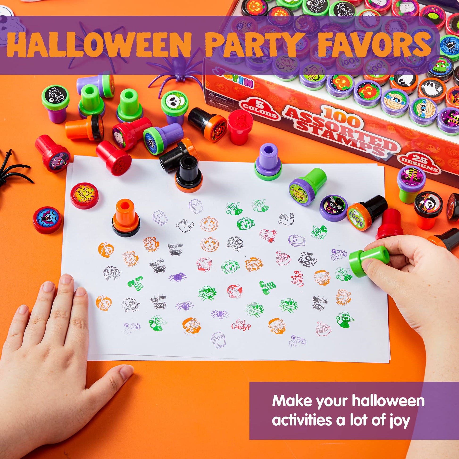 Joyfy 100 Pcs Halloween Assorted Stamps for Kids,Halloween Stampers Halloween Stuff Halloween Goodies Bags Prizes,Halloween Toys for Trick or Treaters Gift,Basket Stuffers
