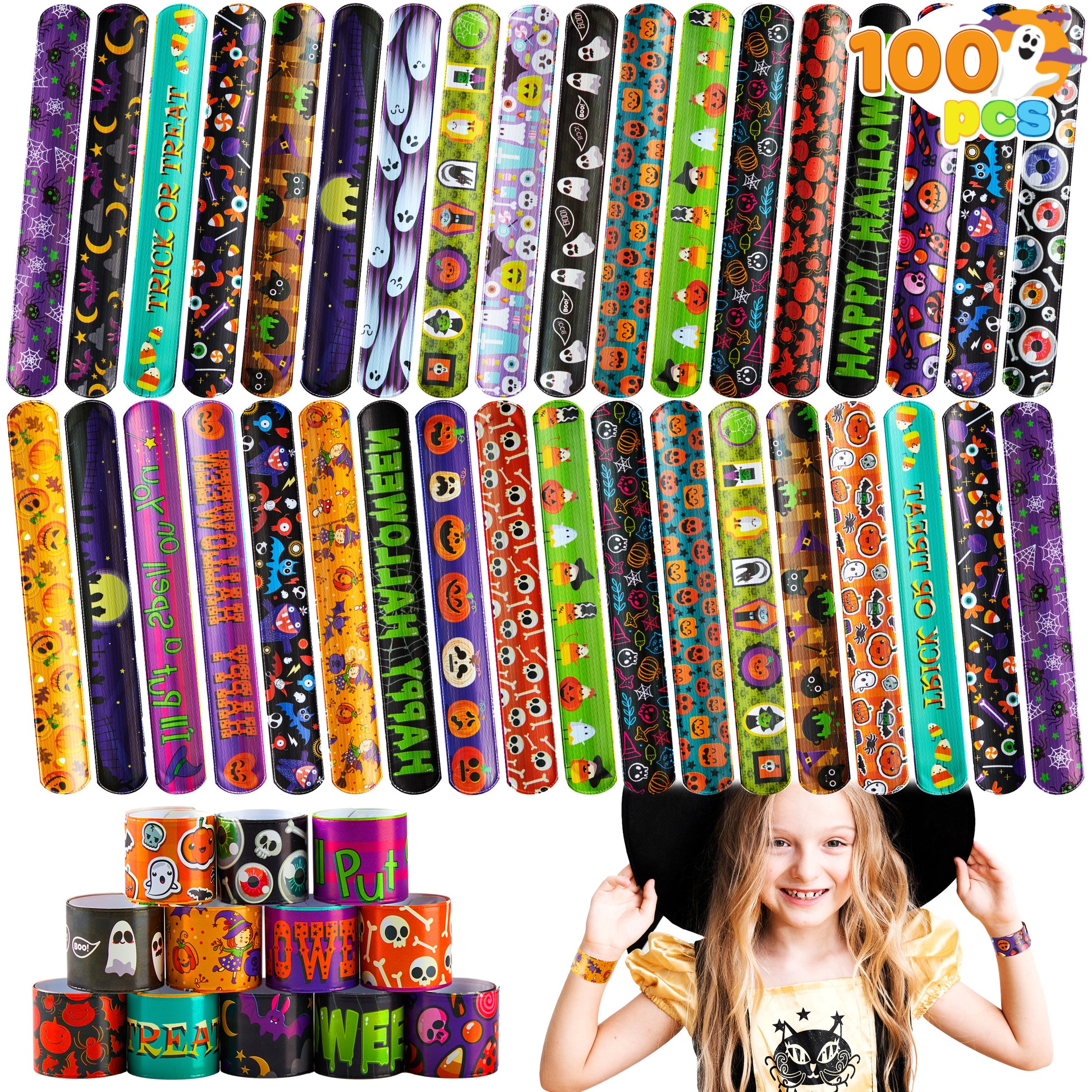 Joyfy 100 Pcs Halloween Slap Bracelets for Kids,Halloween Toys Bulk with Spider,Pumpkins,Animal Print for Prizes Gift Trick or Treat Party Favors,Halloween Crafts for Kids,Classroom Favors