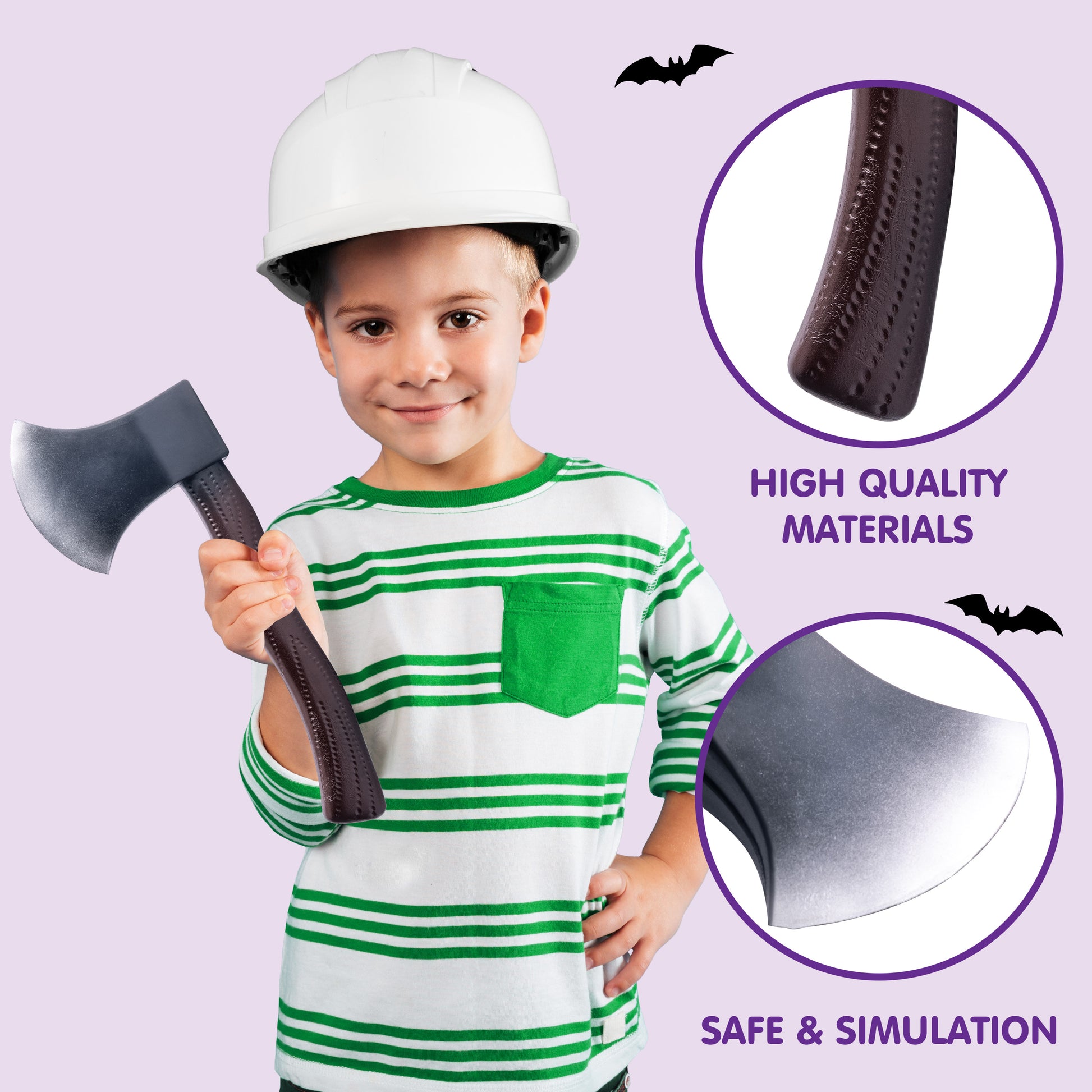 - Non-Toxic. Meet the US toy standard. Safety test approved. Easy to Carry. The axe prop is made of plastic. Even little kids can easily pick it up.
