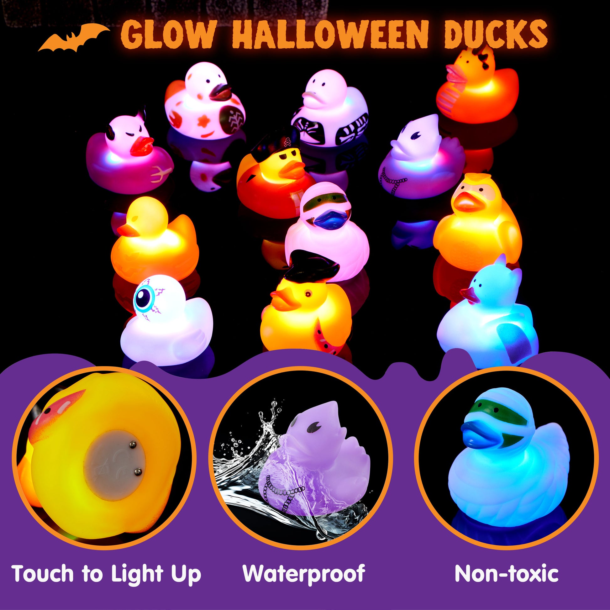 Joyfy 12 Pcs Halloween Rubber Ducks,Halloween Toys Glow-in-The-Dark Rubber Ducks in Bulk for Baby Toddlers Kids,Halloween Bath Toy Basket Prizes,Halloween Toys for Trick or Treaters