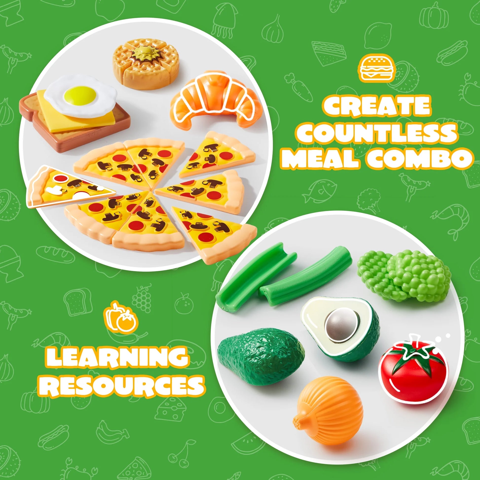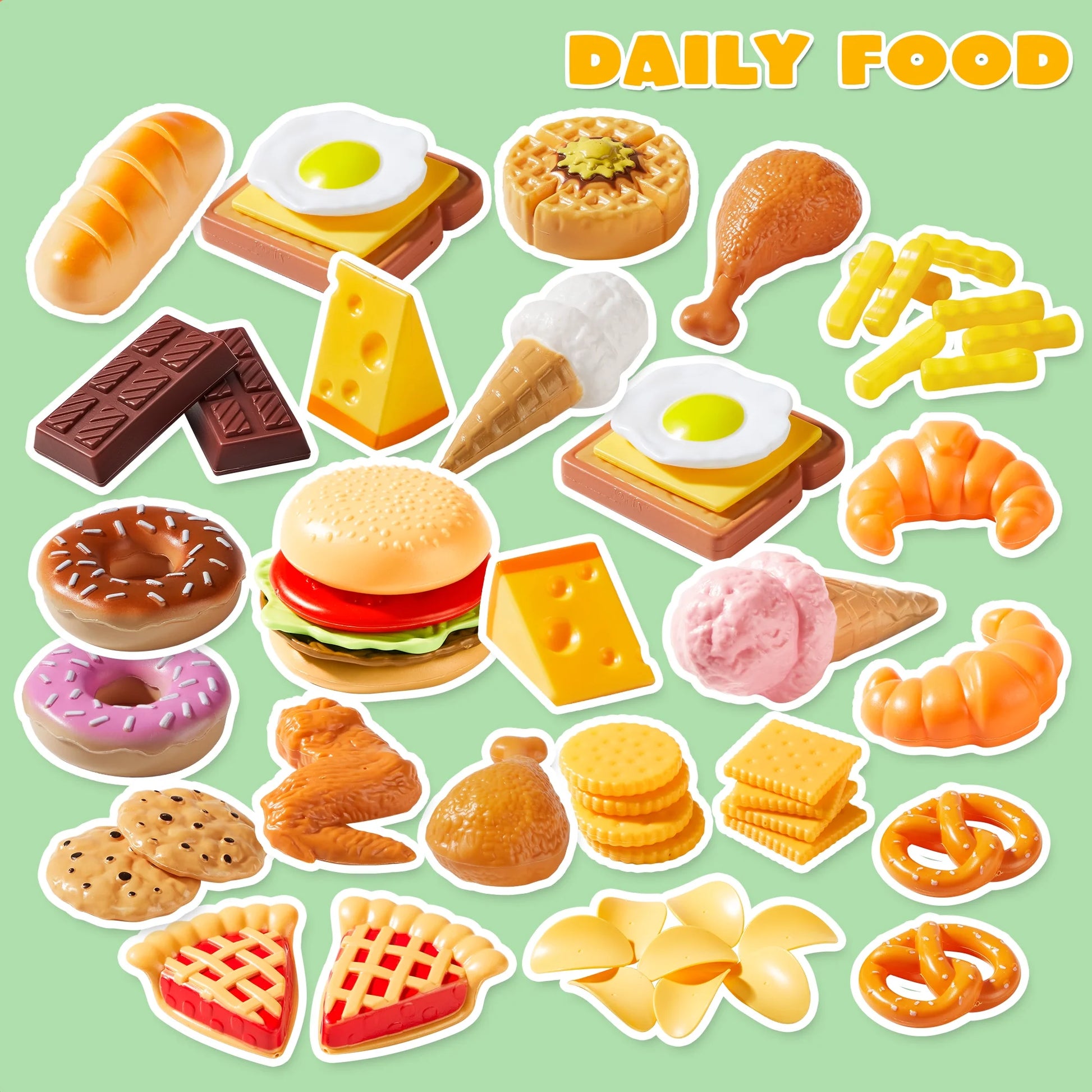 SYNCFUN 135 Pcs Play Food Set for Kids Kitchen, Pretend Play Toys for Kids Toddlers, Kitchen Accessories Fake Food Toy, Party Favor Christmas Stocking Stuffers